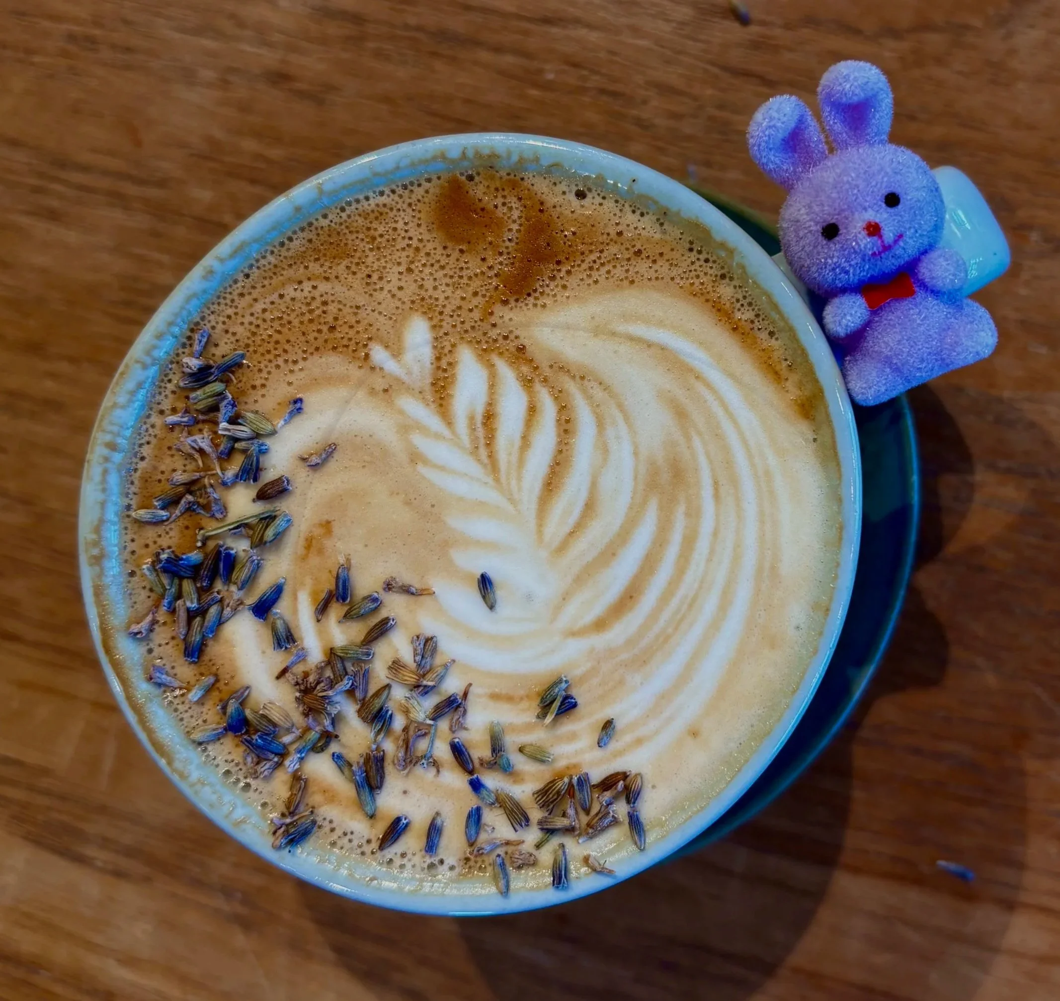 House-made lavender syrup, honey, espresso, with your choice of milk. Can be served hot or iced.