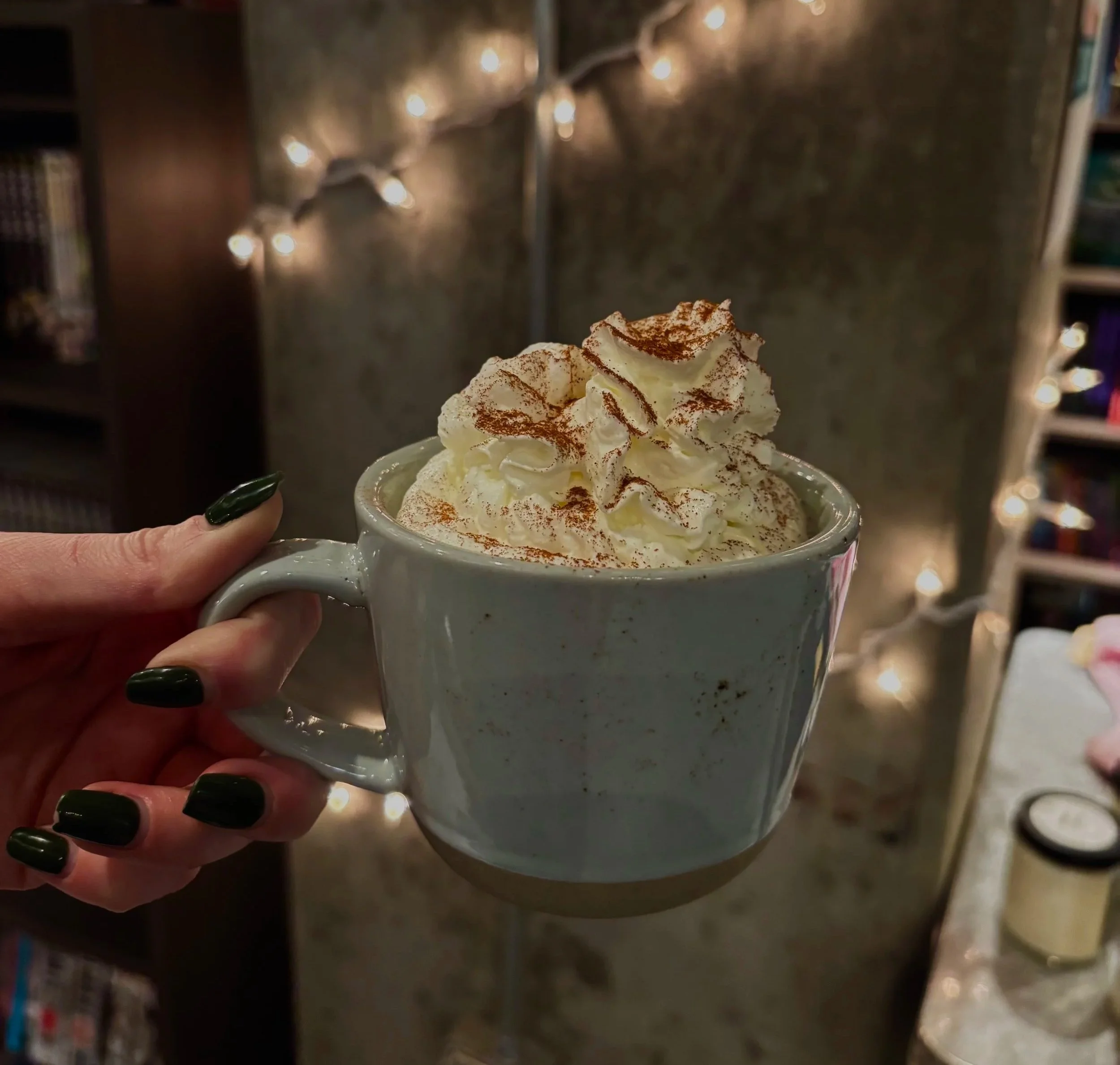 Vanilla and cinnamon, espresso, with your choice of milk and topped with whipped cream.